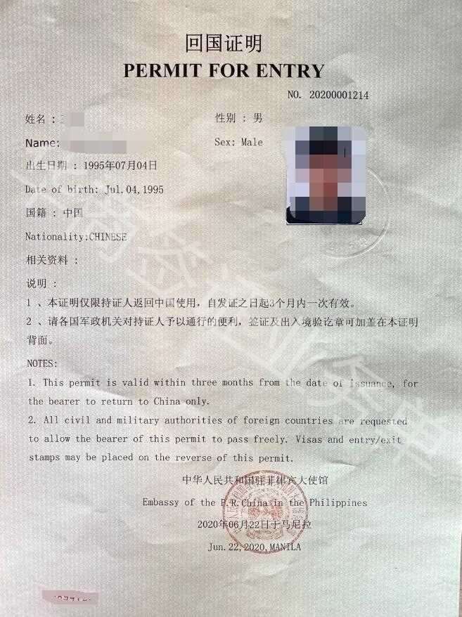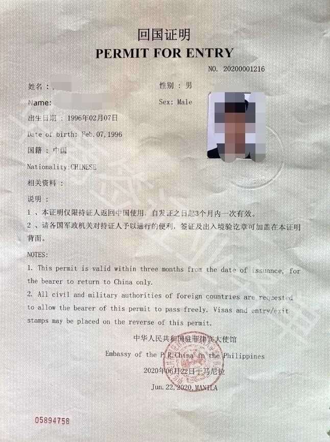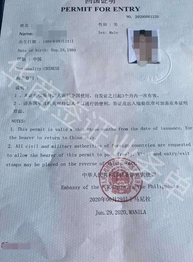 菲律宾补办护照旅行证回国证明图片样式图片