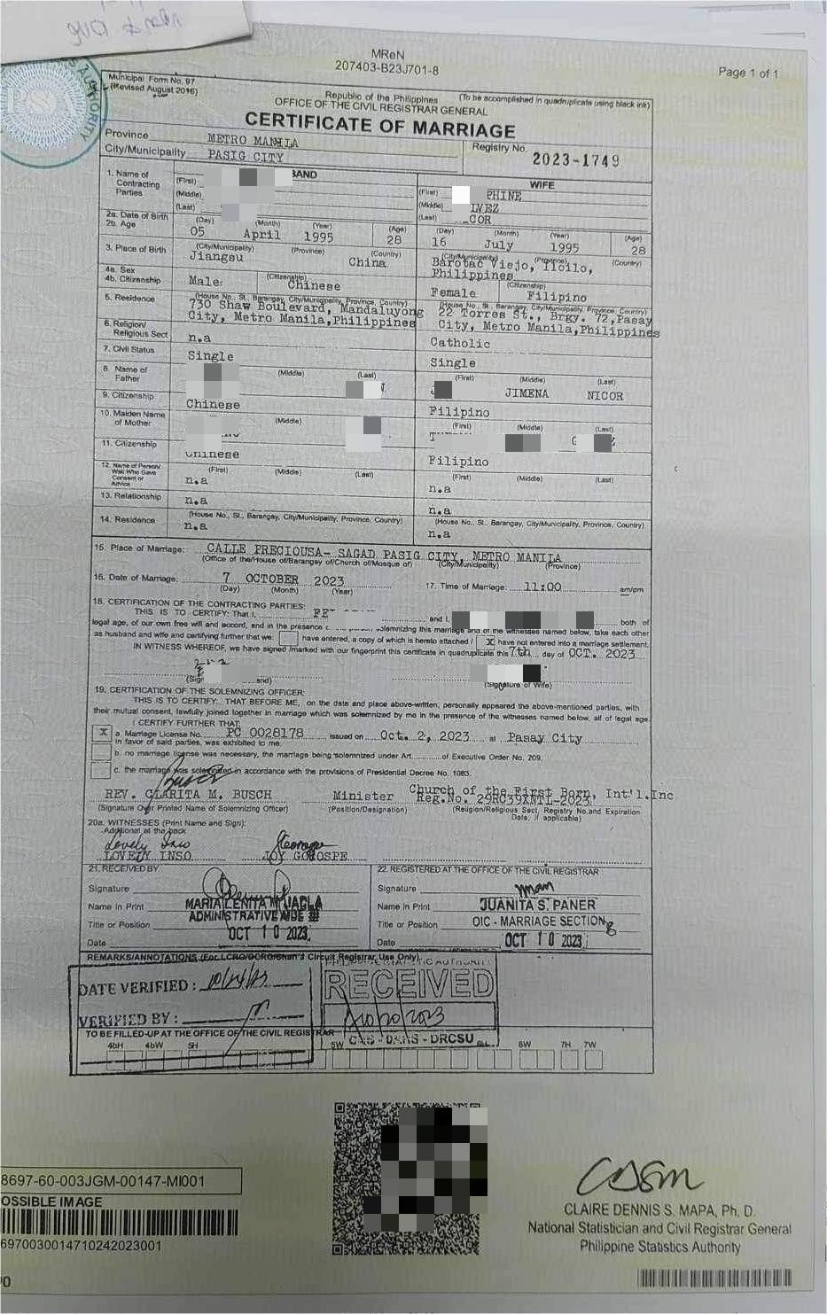 结婚证是通过华商签证办理,办理期间客服全程帮我解答问题,靠谱
