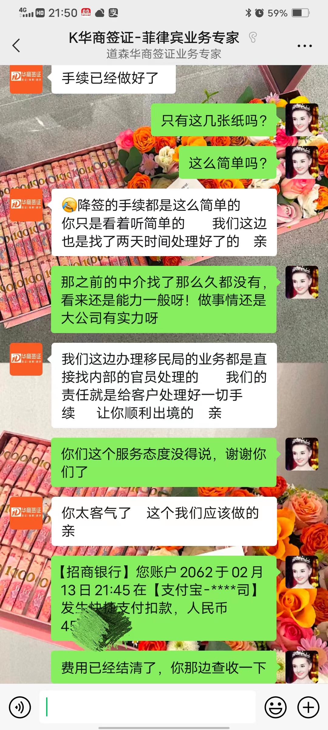 特别感谢华商签证,来菲律宾4年补办旅行证2次,预期罚款2次,每一次都尽心尽力,今天刚刚拿到第二次办的旅行证和签证,可以安心回家了,感恩,话不多说,值得信赖