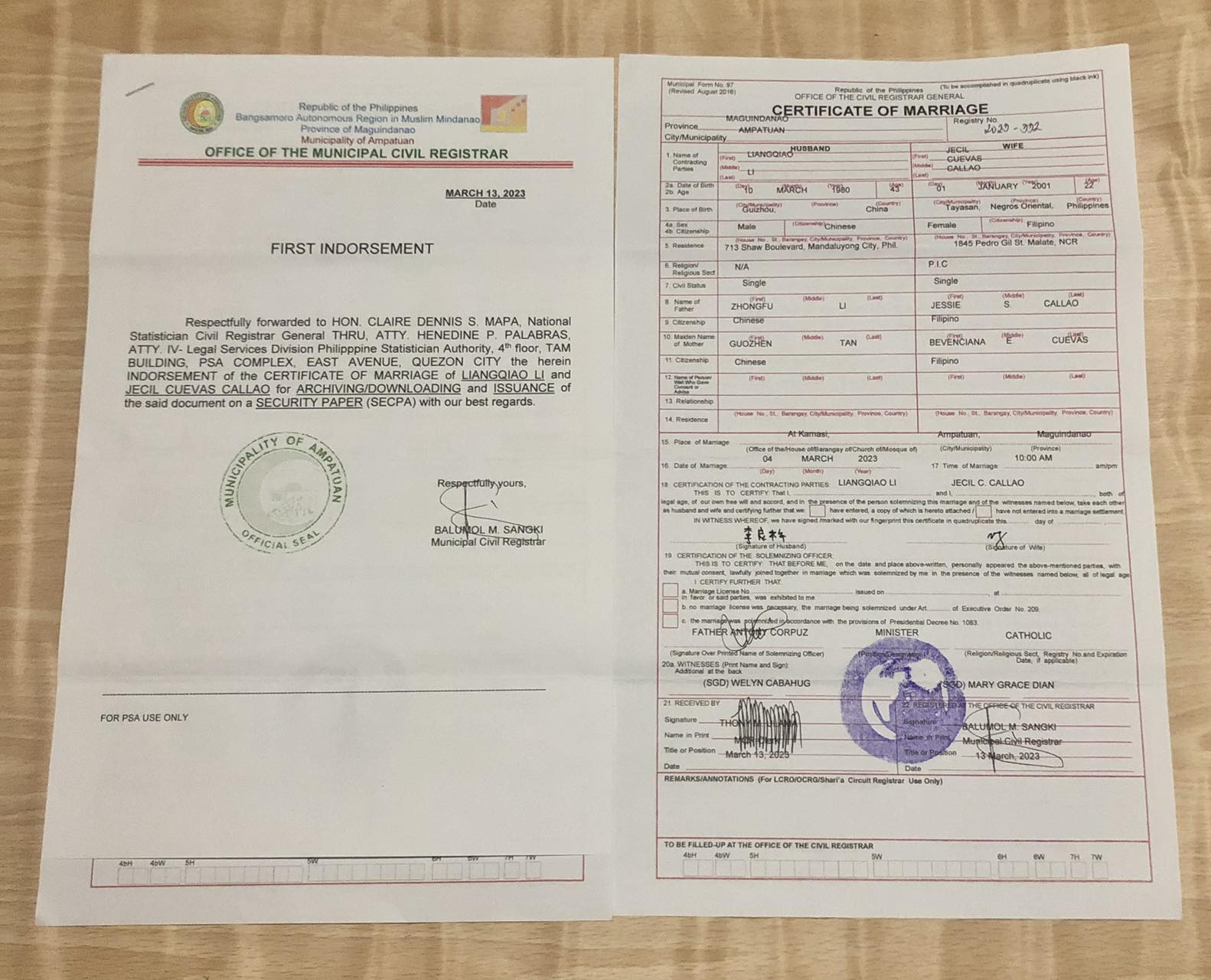 在他们家办的结婚证和签证,中间虽然有些小挫折,不过我还是选择了相信,已经顺利拿到了签证,感谢!华商签证值得信奈!