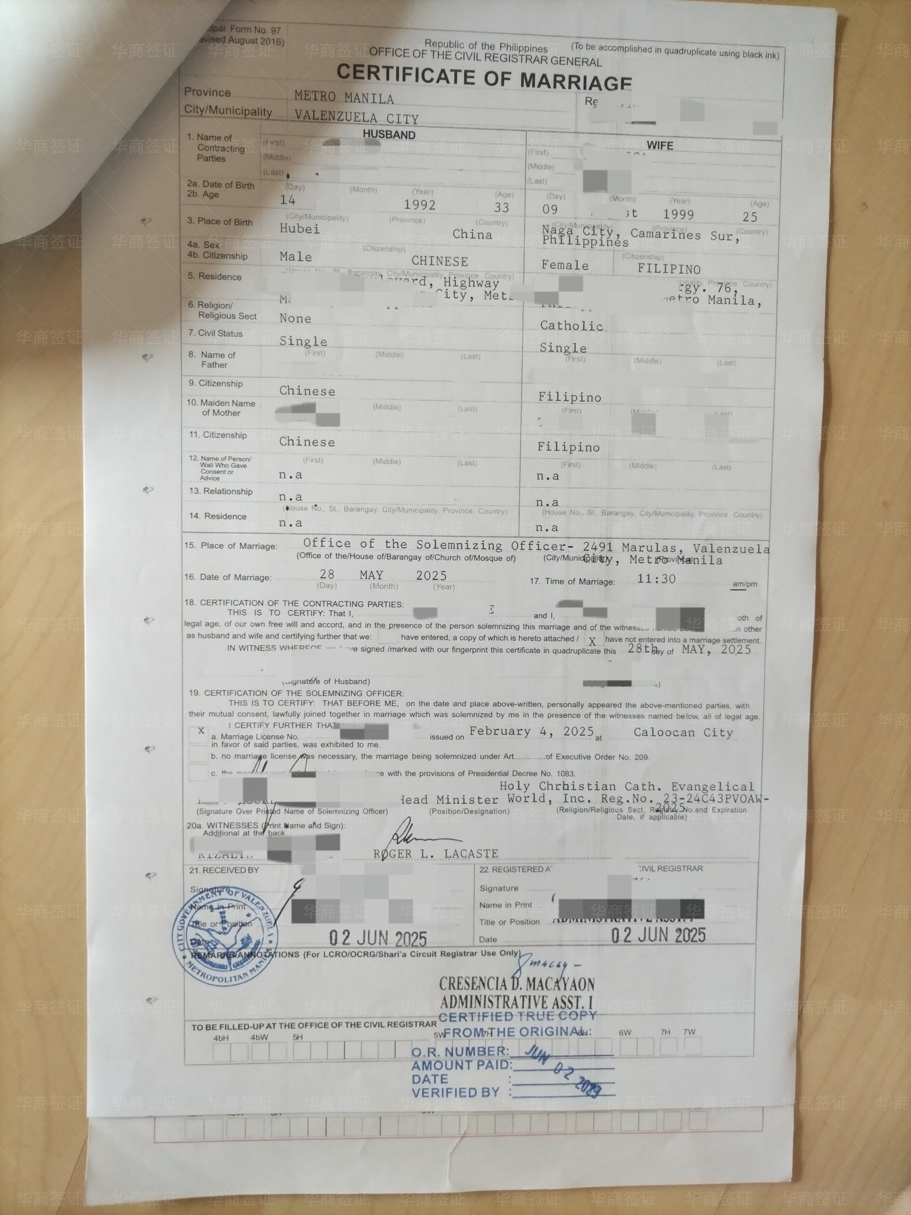 我们俩夫妻都是不菲律宾人,一个中国人一个越南人,我们的结婚证、续签、ECC还有孩子的手续,华商都给我们办的很好,非常满意,解决了我们很多问题,十分感谢