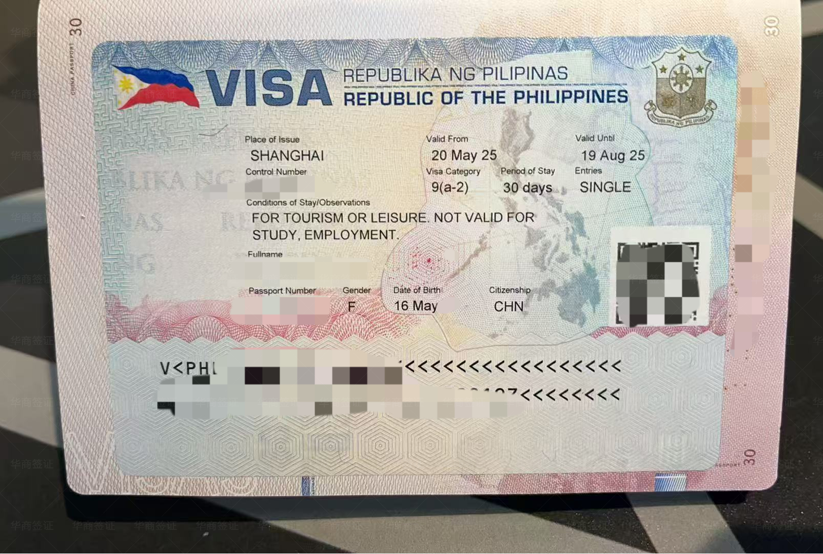 我老婆去中国的签证到手,办的还挺快从提交资料给他们到出签没记错的话好像就一周左右这样,而且很省事,提交的资料都是照片的多,给他们后,他们就帮你做资料,有中国人有有菲律宾人跟我们老婆沟通的时候也很顺畅,还是靠谱的
