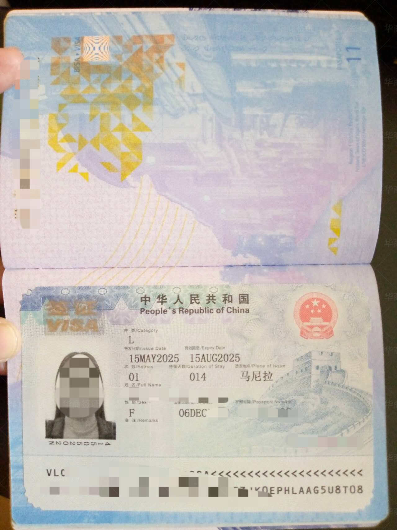 签证到手了,给我女朋友办的入华旅游签,包签的果然放心,资料也准备的好,完全不用担心,很赞?。。?!