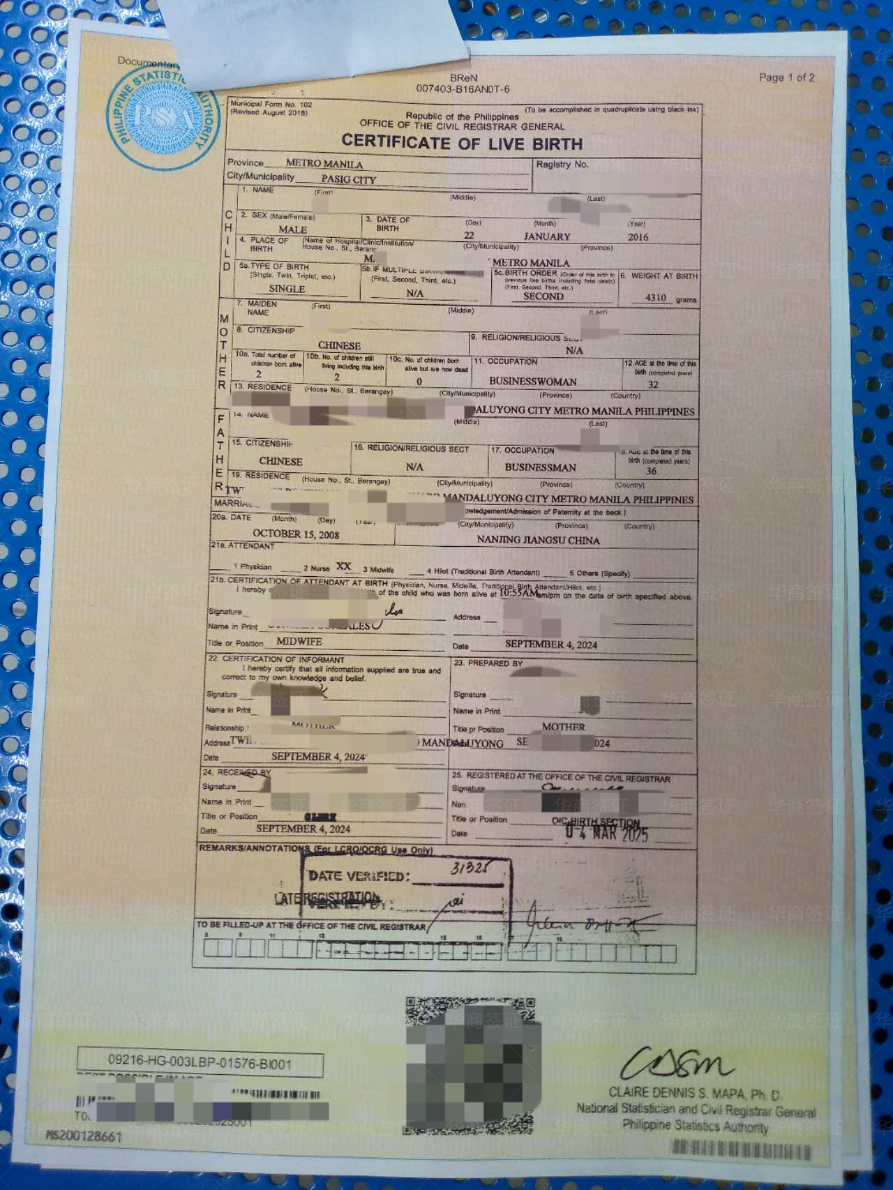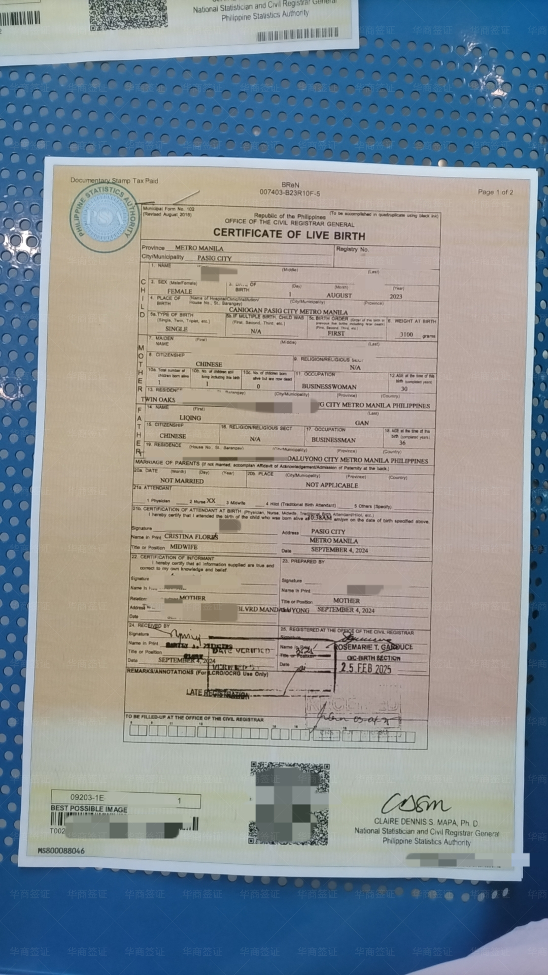 在他们这办的出生纸,已经成功拿到了证件,整个过程虽然有些繁琐,但工作人员的服务态度非常友好,期待下次有需要时,再次选择与华商合作