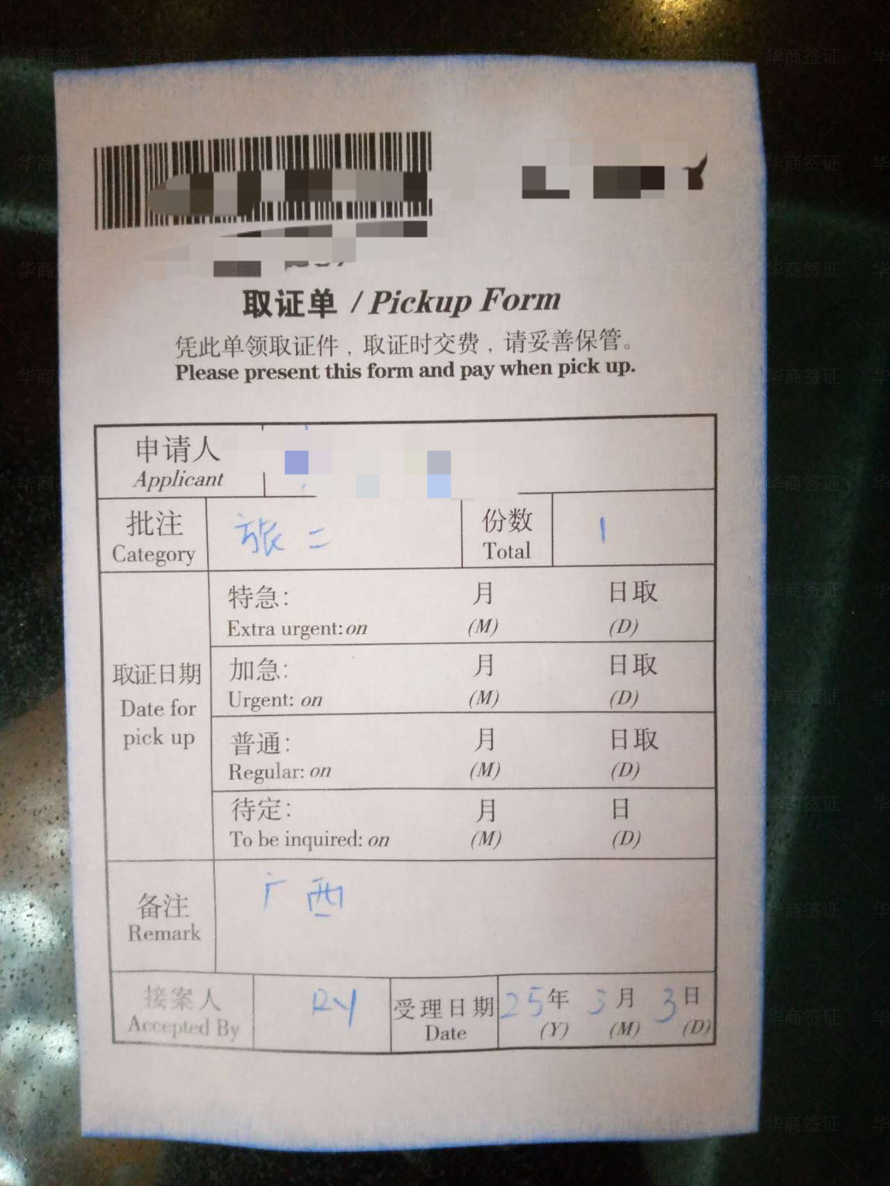 给我女朋友办的中国签证提交了,过几天就能去取证了,他们办签证确实是很有一套,很专业有实力又快又有效率,也不用本人去,沟通得也很好,很有性价比很值