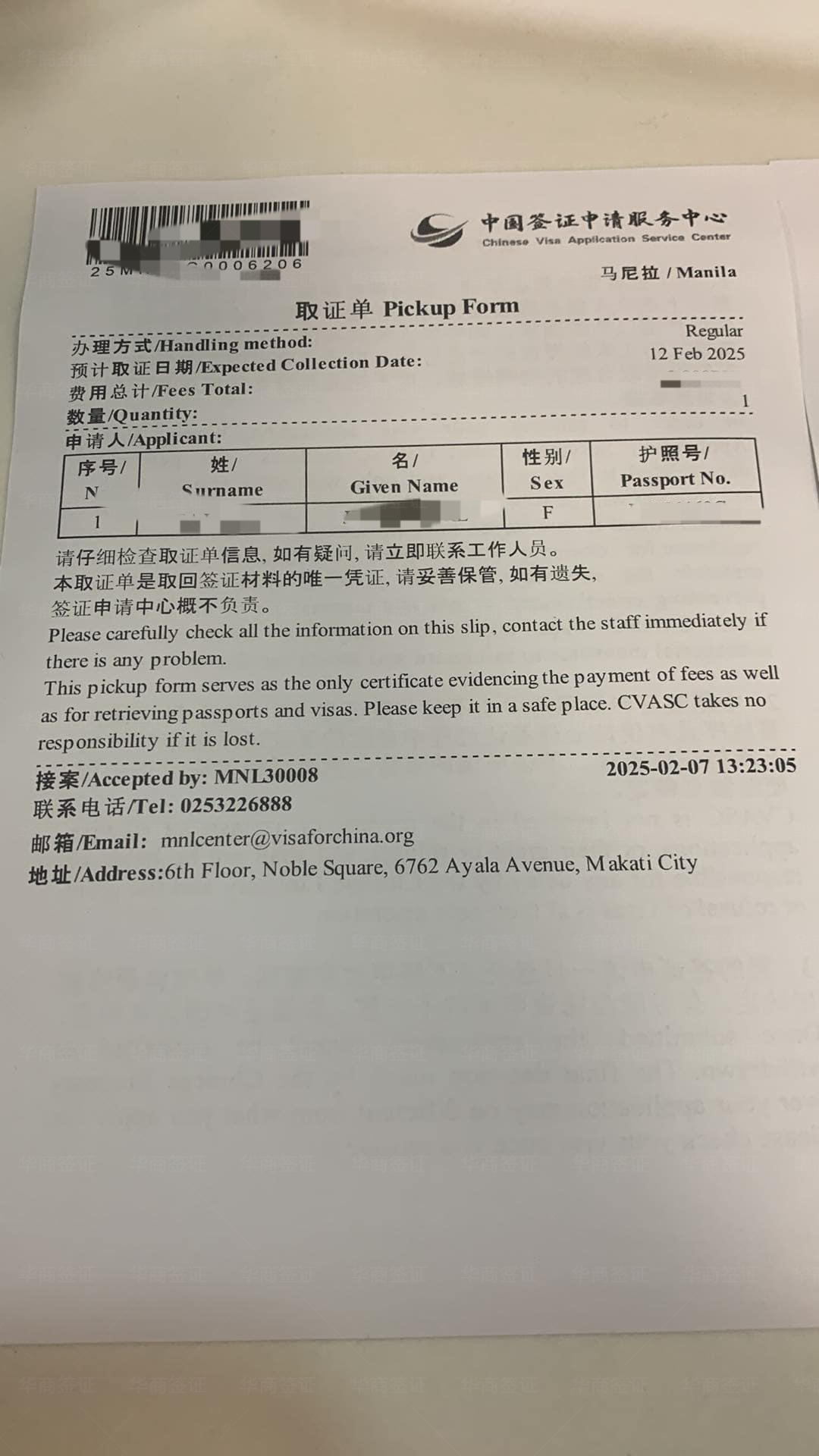 拿到我老婆去中国的签证了,办理很快,不亏是专业的又经验丰富又有效率,就按着要求给资料就好了,也不需要填什么表格,他们都帮你写的,出的签也快,这个钱花的还是值得