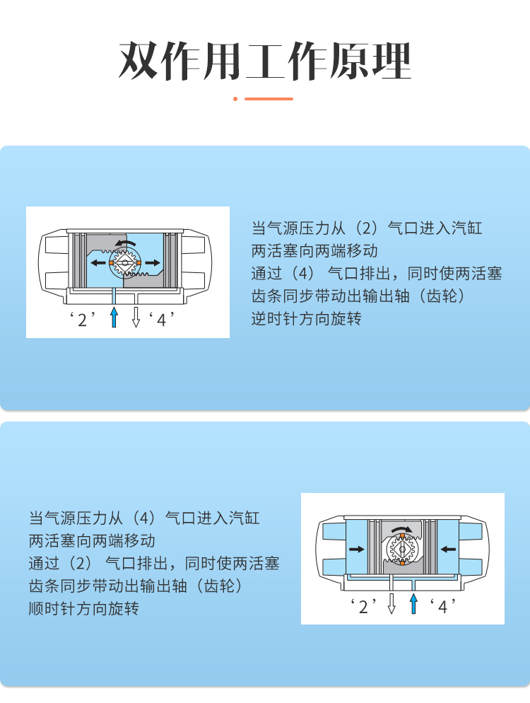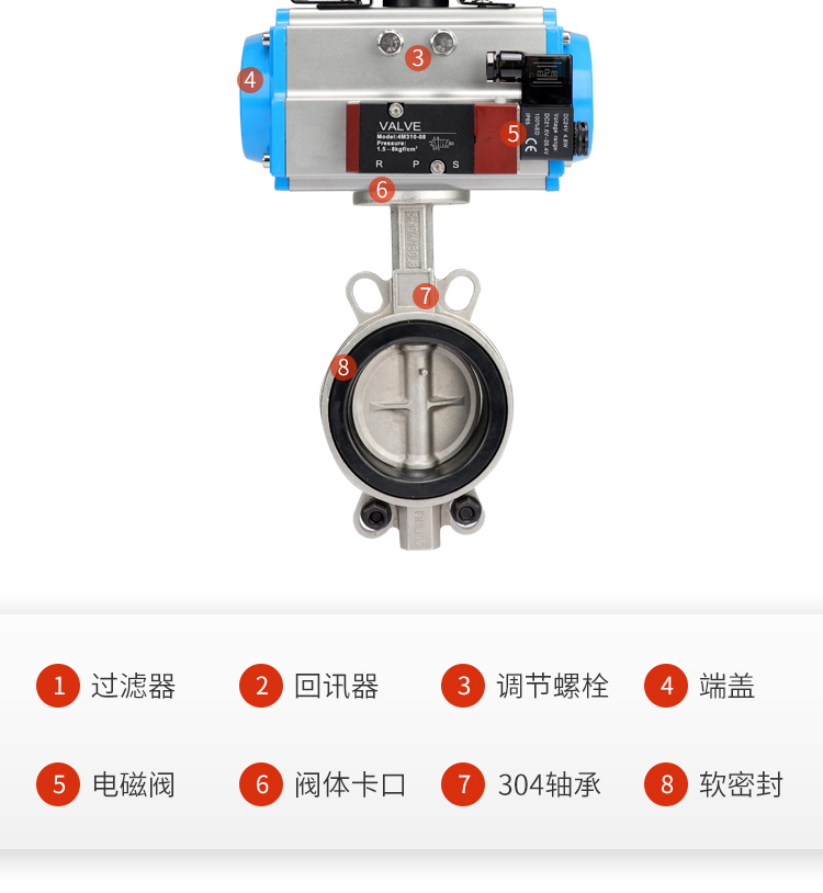 气动对夹蝶阀,蝶阀配上气动执行器。气动执行器的执行速度相对较快,并且不需要工人亲力亲为,在很大程度上节约了人力资源以及时间。蝶阀的蝶板安装于管道的直径方向。在蝶阀阀体圆柱形通道内,圆盘形蝶板绕着轴线旋转,阀门初始位置根据实际需求而定,当阀门由初始位置旋转90°后即为一个动作结束(由开到关,或由关到开),反之为另外一个动作(由关到开,或由开到关)结束。 二、气动对夹式蝶阀主要特点 1、设计新颖、合理、结构独特,重量轻,启闭迅速。 2、密封件可以更换,密封性能可靠达到双向密封零泄漏。 3、密封材料耐老化、耐腐蚀,使用寿命长等特点。 4、两截式阀杆无销连接,结构简单紧凑,维修方便。 5、阀座密封与靠背一体结构,减少阀座变形量。 6、阀杆轴向定位装置,增强密封性、减少阀门扭矩。 7、可以任何位置安装,维修方便。 三、工作原理 气动蝶阀是用随阀柑转动的圆形蝶板做启闭性,以实现启用动作的气动阀门主要做截断阀使用,亦可设计成具有调节或段阀兼调节的功能,目前碟阀在低压大中口径管道上的使用越来越多。